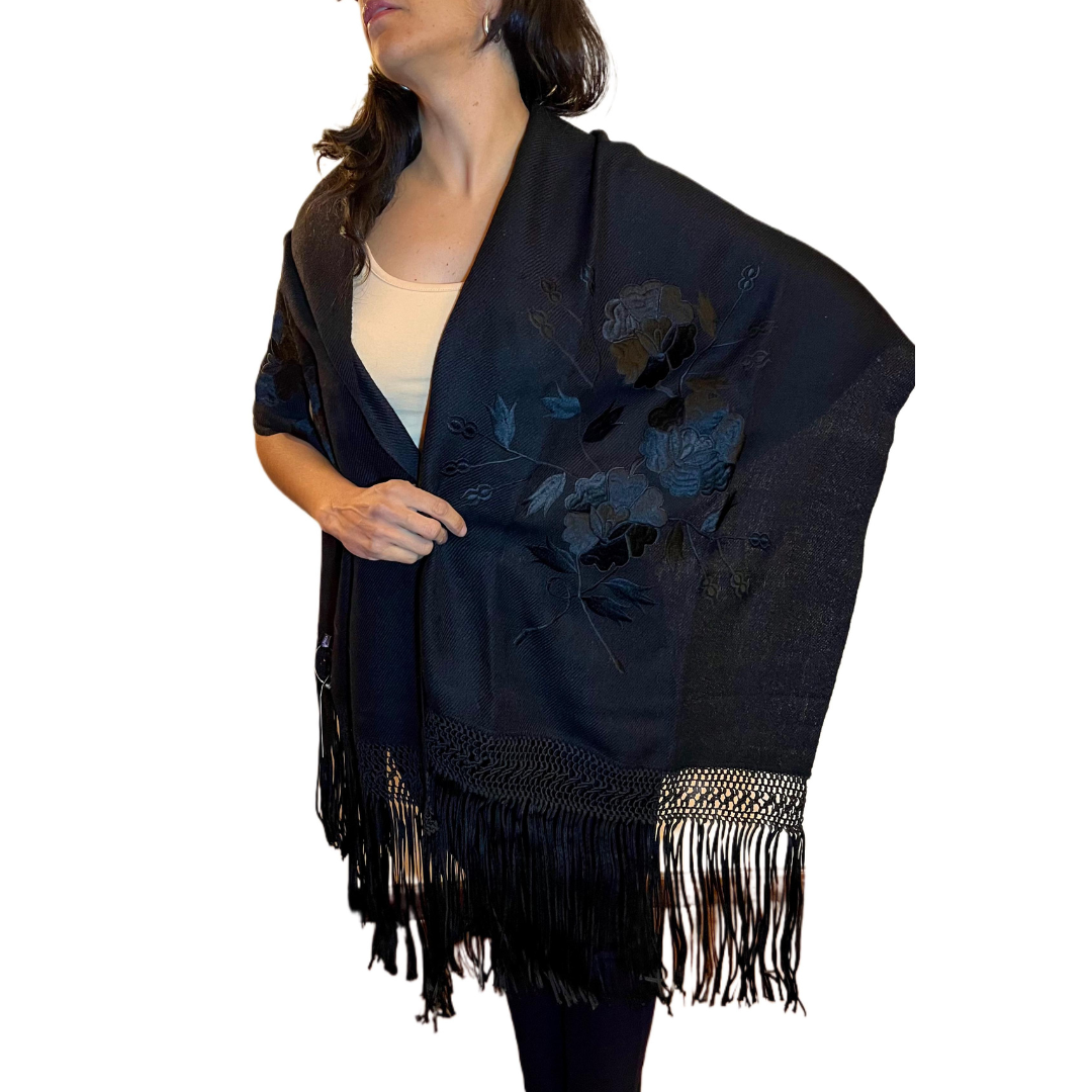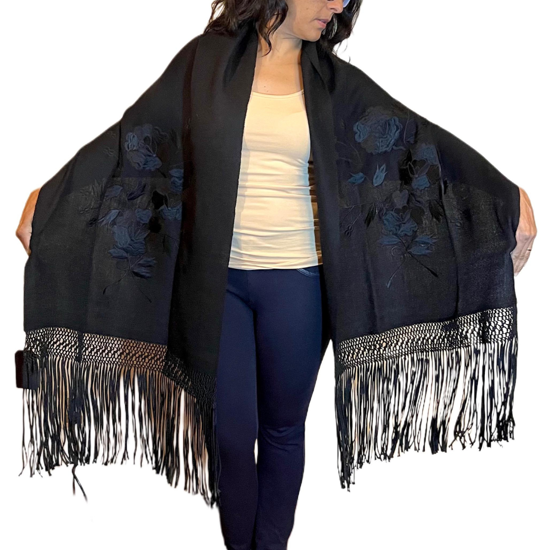 Adorned with delicate embroidered flowers on each side and finished with luxurious handmade silk fringes, these shawls are a perfect blend of elegance and comfort.